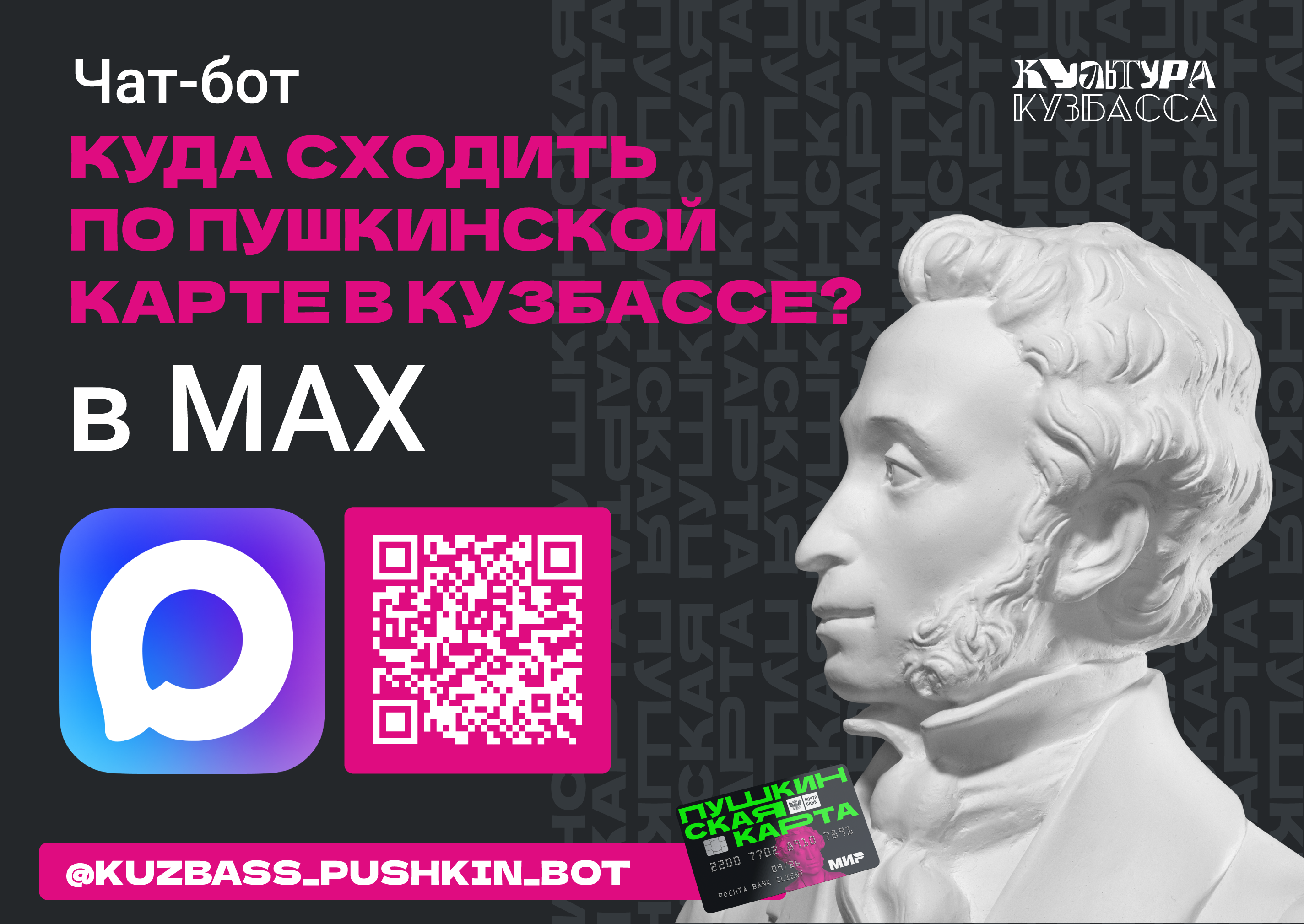 В мессенджере MAX появился чат-бот «Куда сходить по Пушкинской карте в Кузбассе». Он интегрирован с платформой «Культура.РФ» и показывает подборку ближайших мероприятий — без перехода на сторонние сайты.